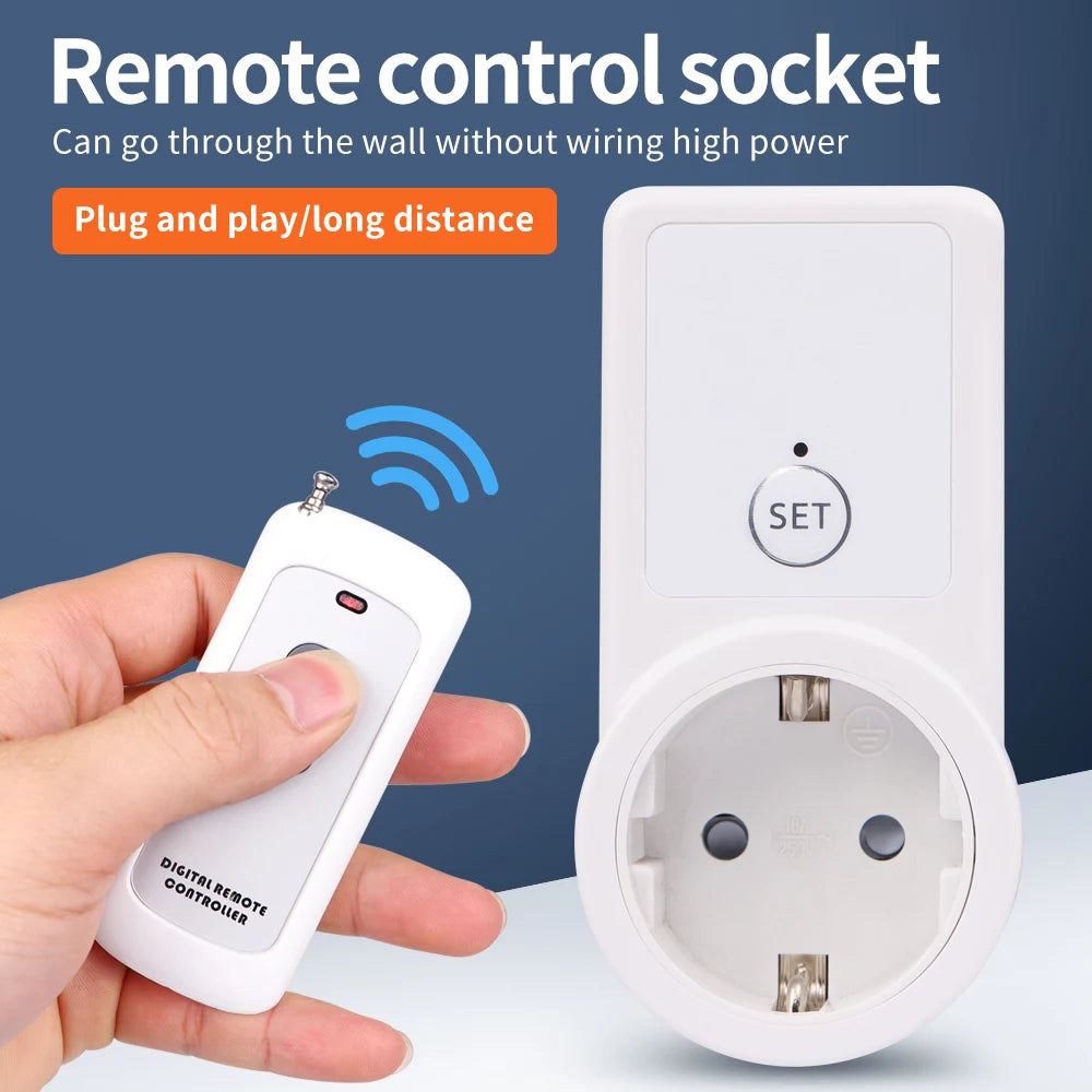 Control your home appliances with ease using this 433MHz wireless remote control smart plug. Designed for EU outlets, this socket allows you to switch devices on or off from a distance — perfect for lights, fans, and small appliances. Its memory-safe function ensures reliable performance even after power interruptions.